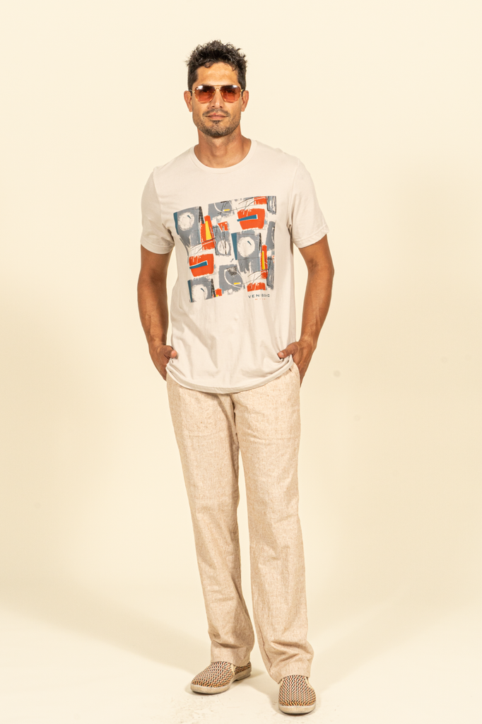 Drawstring Cotton/Linen Pant - Light Brown ( Mixed white & brown thread )